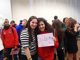 When all the Israelis were picked up and brought back to Whippany, they had a Ma’agal comparing the three different types of schools they have experienced: private schools, public schools, and Israeli schools. They made note of the similarities and differences between the schools and discussed what worked in each, and what didn't. Afterwards, the Americans arrived at the Federation, where we had a workshop and anxiously awaited the farewell dinner while spending time with our 39 best friends. We thought it would be a sad event, because it was the beginning of the end of our time with the Israelis in New Jersey, but we were very wrong. It started off with a delicious dinner! As the night continued we listened to a series of speeches from the farewell committee (Lauren, Seth, Coby, Julian, and Juliet). They summed up the NAS perfectly. We saw a montage filled with the pictures of us throughout the ten days in New Jersey together, which went way too fast. And if you think that the excitement ends there, you’re wrong. All of the Diller teens stampeded to the front of the room for picture chaos. After giving our families home-made hamsas as a gift, we circled around for the Diller famous Achim dance. As always, it took almost an hour to separate all of the Dillers. The building was closing but we just couldn't say goodbye, even though we will see each other tomorrow. Although this marks the end of the NAS, the farewell dinner was terrific, we have the Shabbaton to look forward to, and a bond that will last a lifetime.
